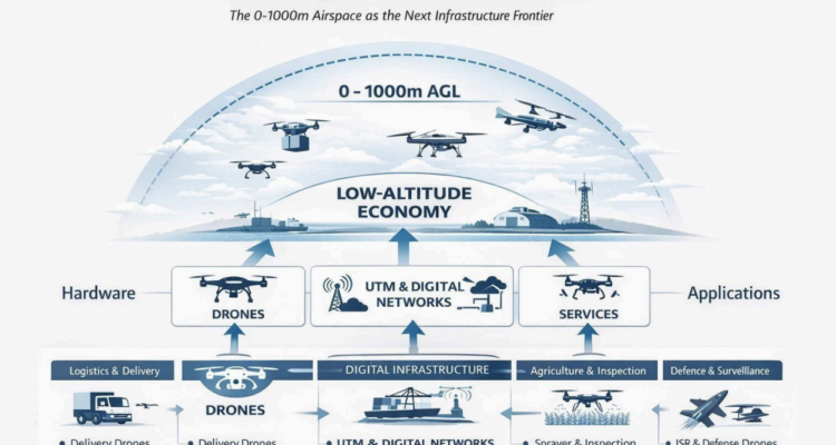 Historically, the airspace below 1,000 metres above ground level (AGL) has been treated merely as a safety buffer—a “residual” space to keep drones away from traditional aviation. Today, that perception is undergoing a radical shift. This low-altitude layer is emerging as a new infrastructure frontier, analogous to roads or radio spectrum. In this new paradigm, value is generated through structured access, throughput, reliability, and network effects rather than individual, episodic flights.